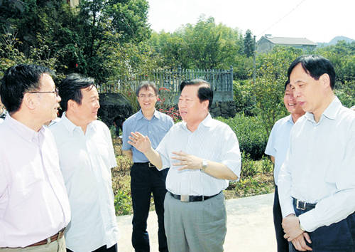 9月25日,环境保护部部长周生贤在浙江省副省长陈加元的陪同下,考察调研了浙江安吉县生态文明建设、农村环境连片整治以及绿色产业发展情况。
