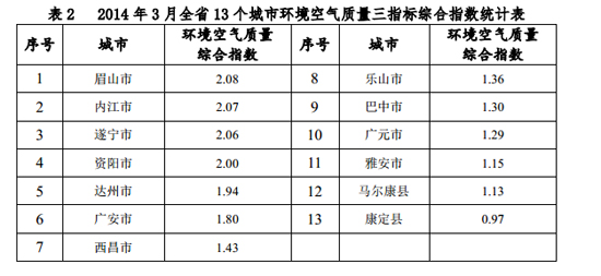 四川省3月城市空气质量排名出炉:自贡最好 成都垫底